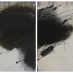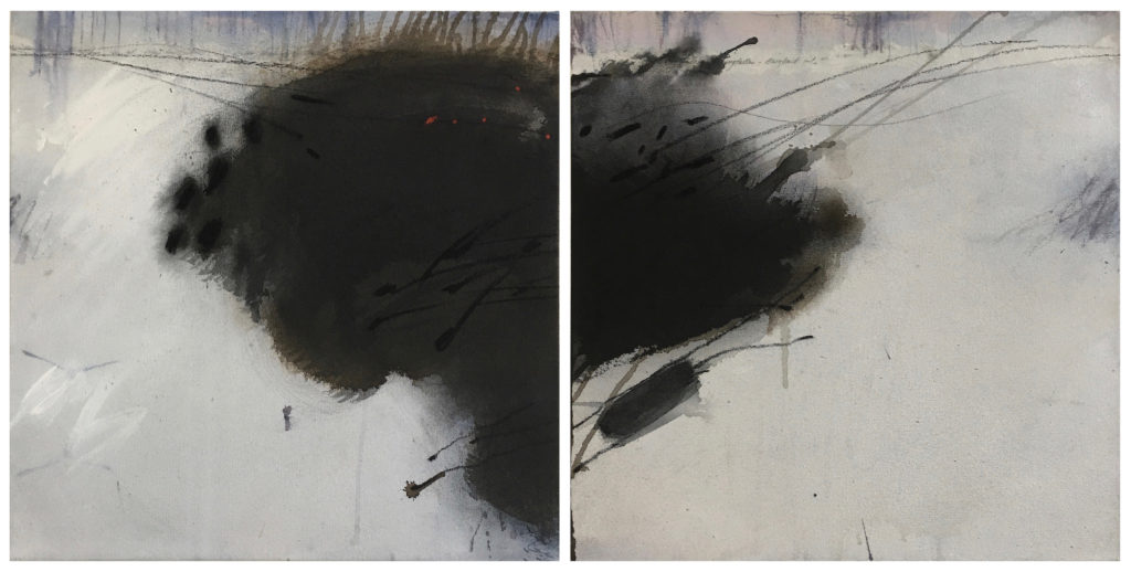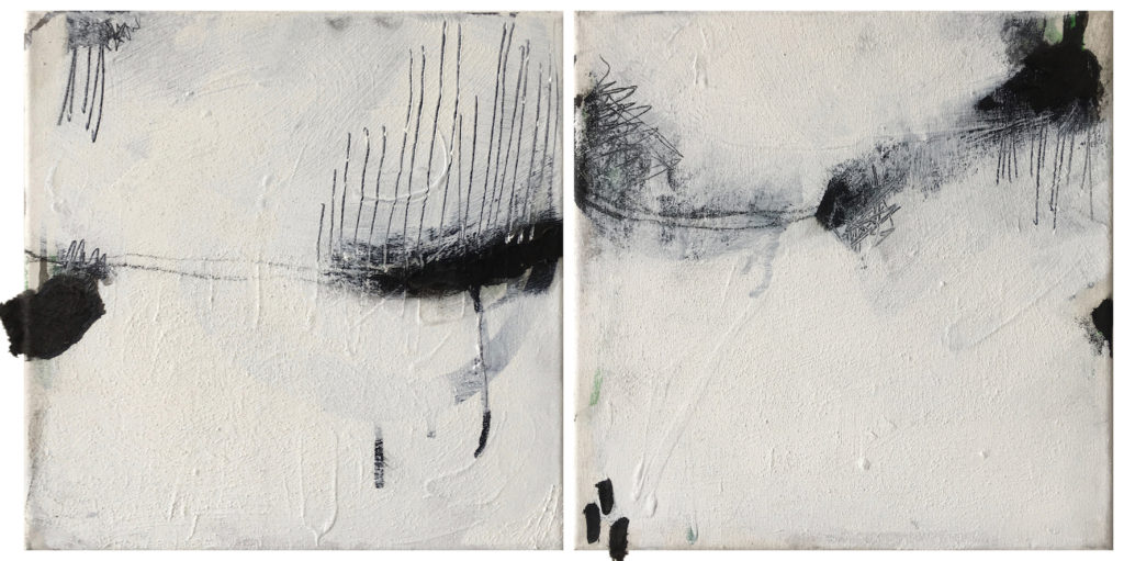 Weit aus der Zeit, 120x120, Diptychon, Mischtechnik auf Leinwand, 2019